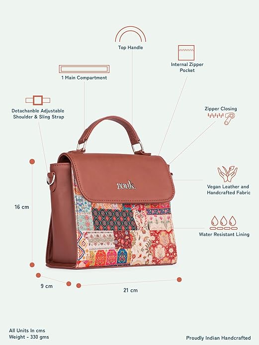 - Proudly Indian and Vegan: Crafted with premium vegan leather and handicraft fabric, exuding a versatile statement look.